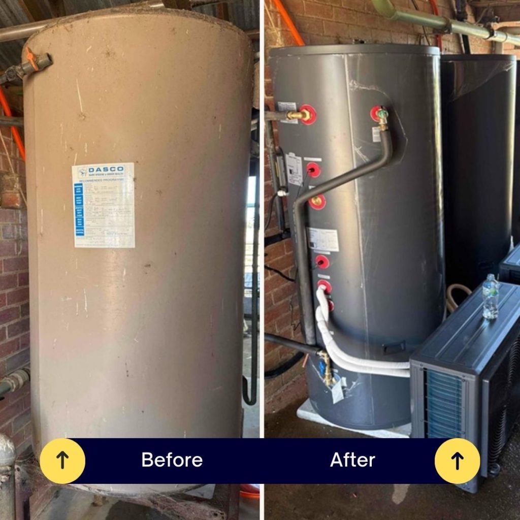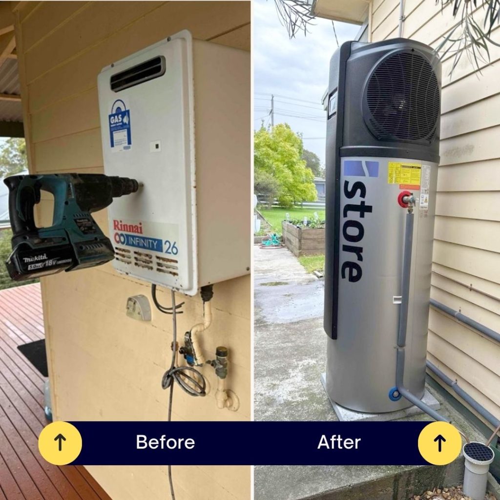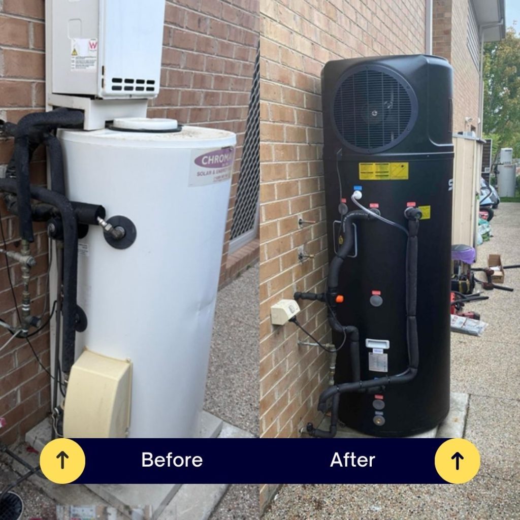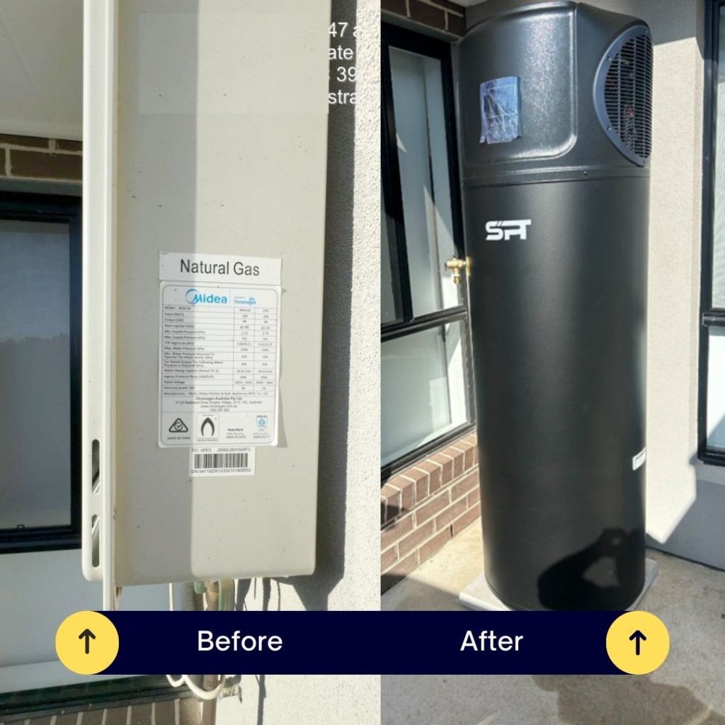 The anticipated 75% reduction in water heating bills will occur after installing an energy-saving heat pump hot water system. For Victoria state households, another incentive to upgrade is hot water (heat pump) rebates being offered by the Victoria government under the Victoria Energy Upgrades (VEU) program.